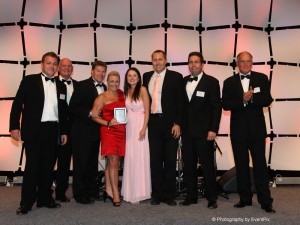 Paul Wrigley, Rebecca Wood & Rebecca Sharples accept the No 9 Regional Office Award